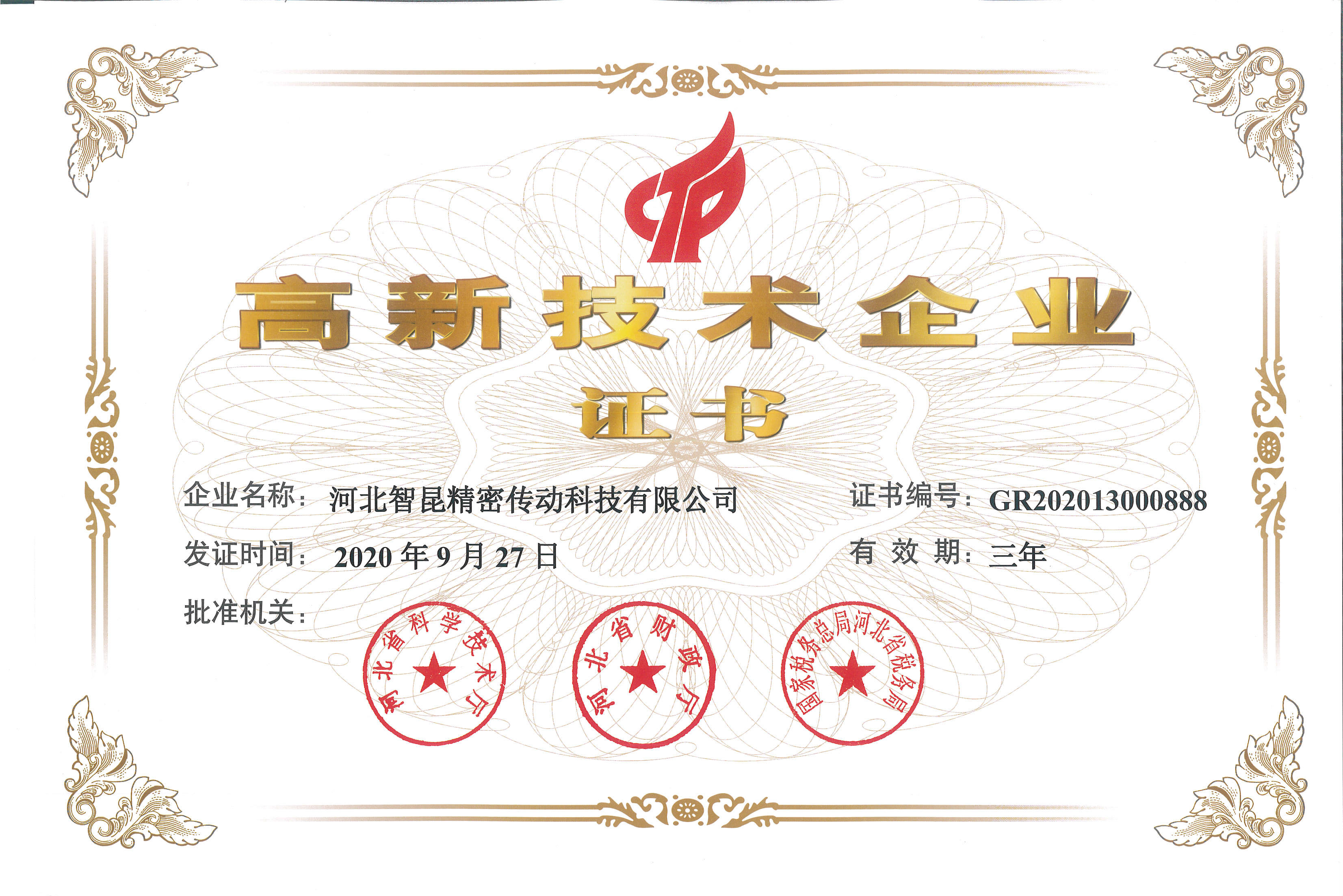 高新技術企業證書